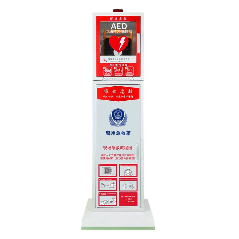 AED箱體:配置三角牌可自行選擇拆裝。大容量儲物柜可容納消防器材或急救包等。